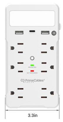 6-Port Surge Protector Wall Outlet with Shelf 2 USB +1 USB-C & Intelligent Light System-PrimeCables