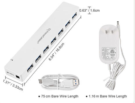 - USB 3.0 Super Speed 7-Port Hub( Equip with 12V 3A power adater,1m power cable)